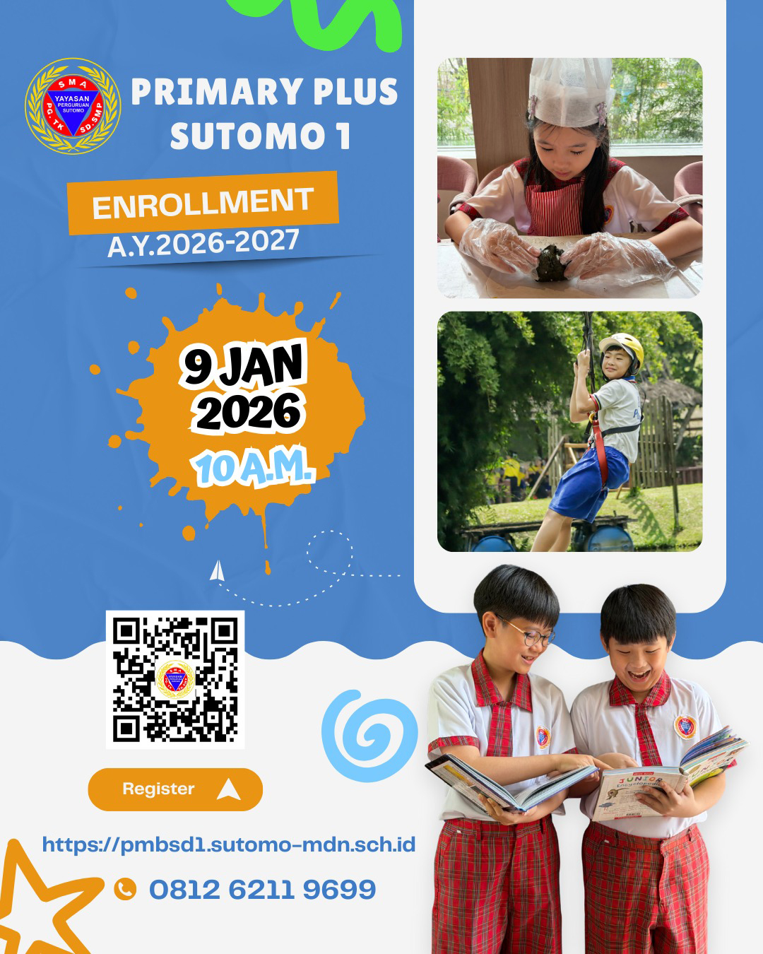 - Siswa yang mendaftar di Primary 1 Plus minimal kelahiran tahun 2020.